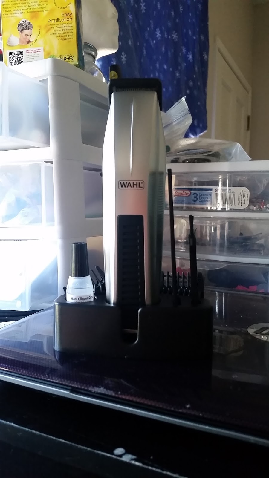 Found this little gem at Ross this past weekend. Bought it for my husband, because his just broke. I was quite impressed with all the little pieces it came with. It has a several different clips, oil, comb, brush, and a blade cover, as well as a little stand for everything to go in. I would have paid much more for this fantastic item. My husband used it this afternoon, to trim his beard and even used it to trim his hair! For a battery operated trimmer, this sure does the job!